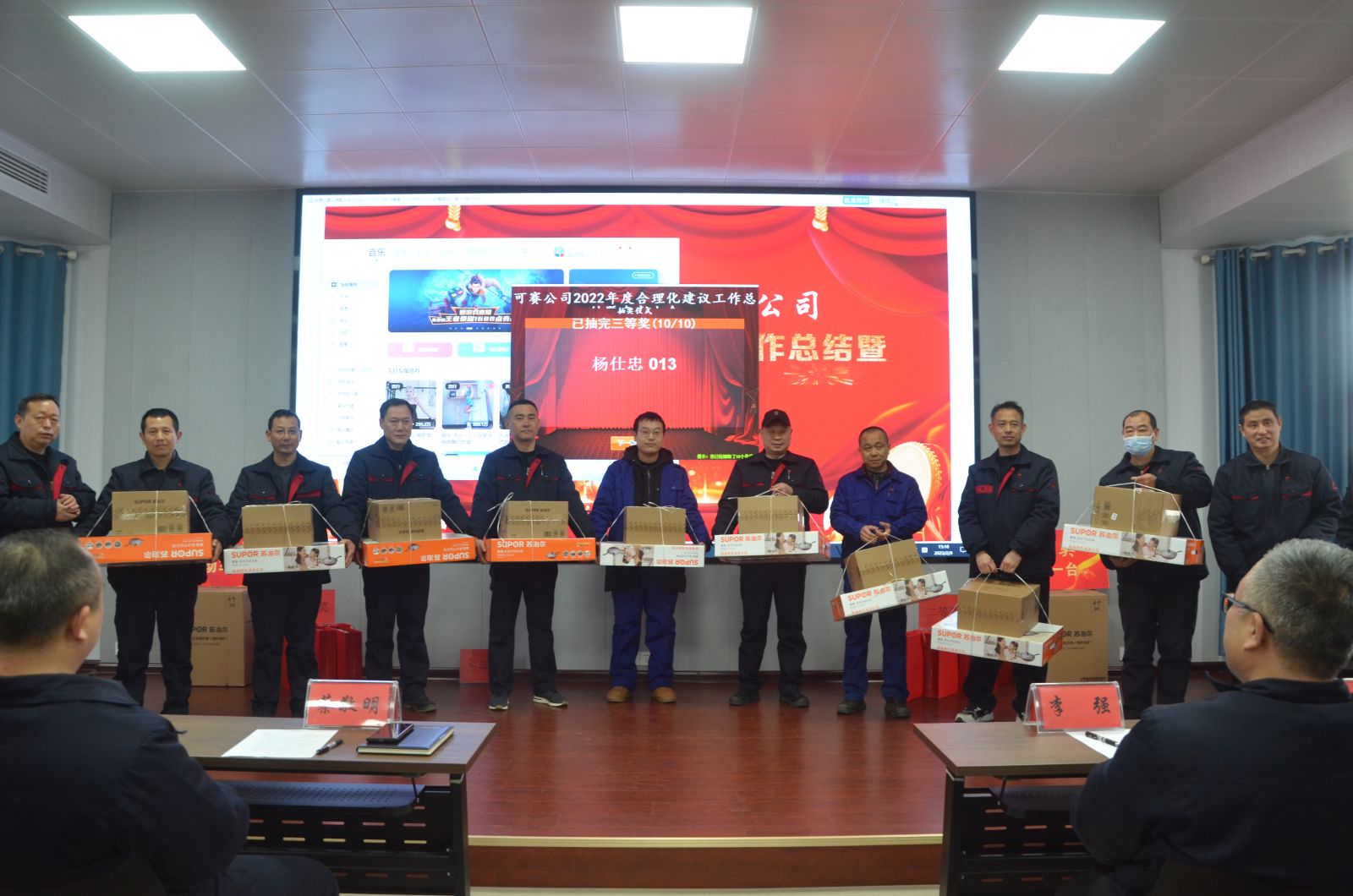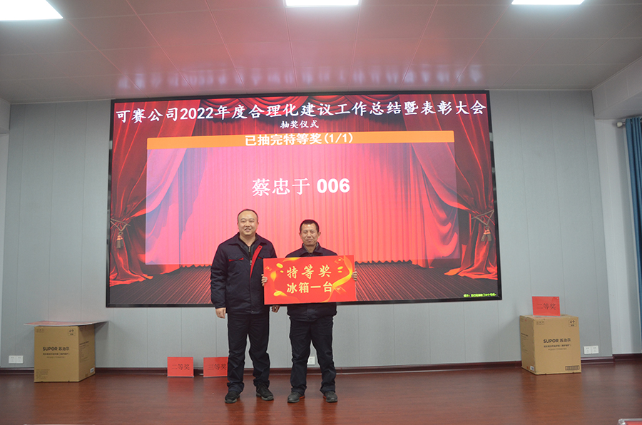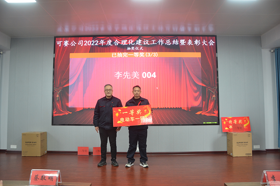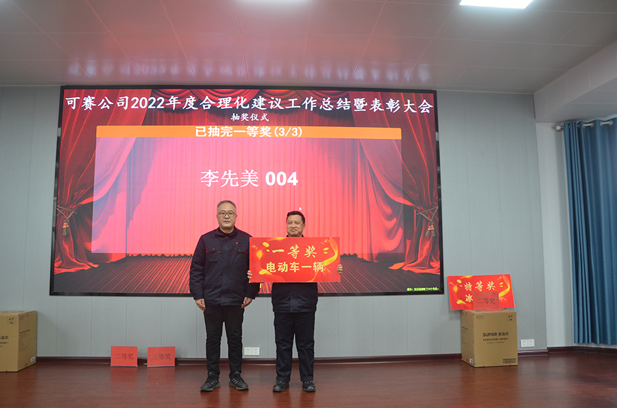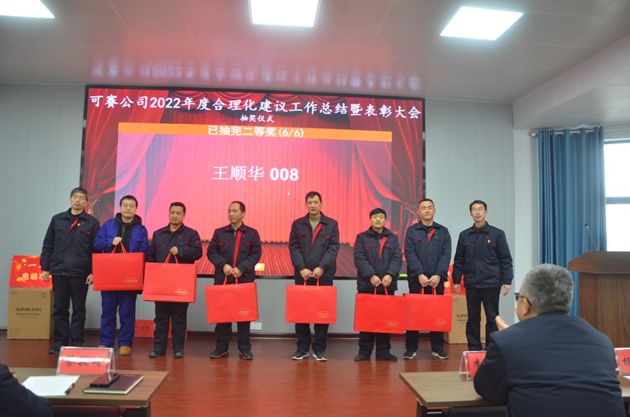 2月9日下午14:45,可赛公司2022年度合理化建议工作总结表彰暨抽奖活动在三楼多功能厅隆重举行。公司党委副书记、纪委书记、工会主席王宜波向大会报告了公司2022年合理化建议工作总体情况,总结了亮点,指出了问题,对2023年合理化建议工作思路措施进行了布置安排。