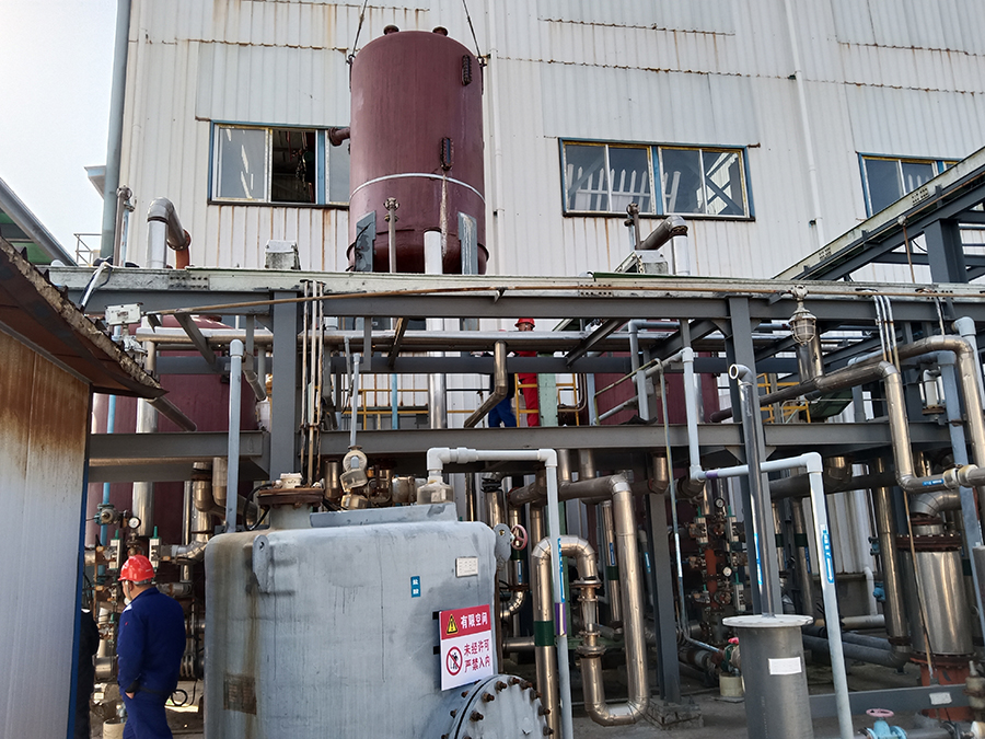 因鳌合树脂塔腐蚀严重,衬胶渗漏影响正常生产,电解车间于大年初七利用停车之际组织人员对其进行了更换。 鳌合树脂塔的作用主要是除去一次盐水中的金属阳离子,制备合格的二次精制盐水,经树脂过滤器送至阳极液贮槽,供电解槽使用。
