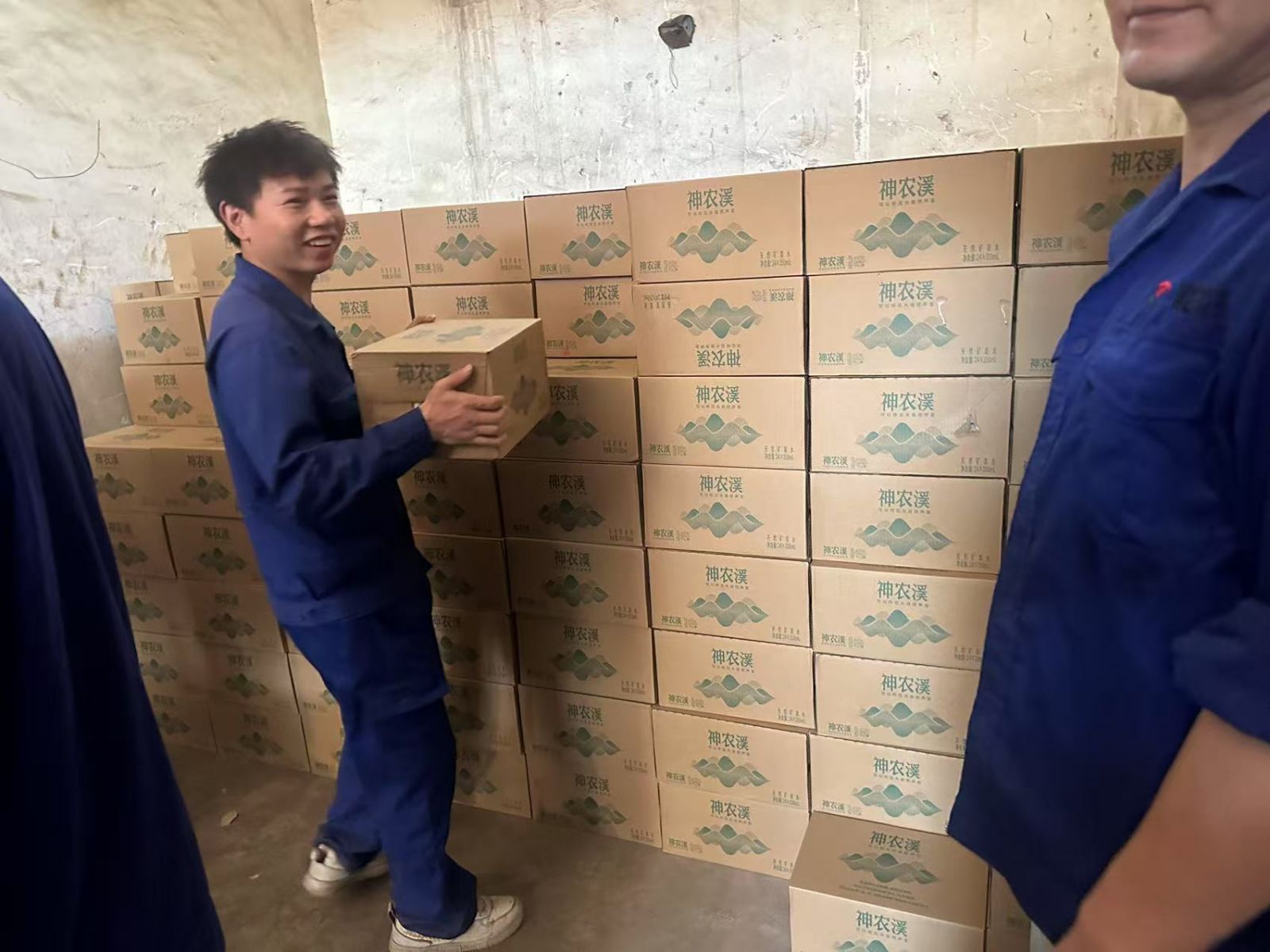 烈日当空,堆积如山的矿泉水箱在阳光下泛着耀眼的光。青年员工们主动请缨,几名身手矫健的员工一个箭步跃上车厢,其他队员迅速在车下排成两条人形传送带。“注意接力!”“左边再来一箱!”的呼喊声此起彼伏。更令人动容的是,几位部门负责人身先士卒,或弯腰推车,或肩扛货箱,汗水很快浸透了他们的蓝制服,在背后洇出深深浅浅的盐渍。